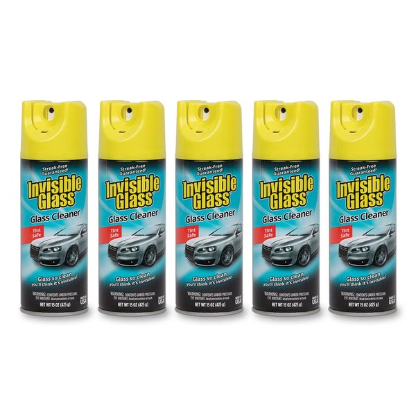 Invisible Glass 91163-5PK Premium Aerosol Glass Cleaner Spray for Car Windshields and Windows, Automotive and Home Window Cleaner, Streak-Free, Ammonia-Free, Tint-Safe – 15 oz (Pack of 5)