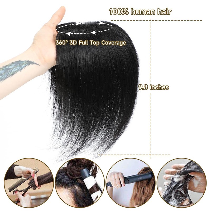 Invisible Hairline Hair Toppers for Thinning Hairs Women Real Hairs 10 Inch Cover Hair Topper Pieces with 150% Density (7 * 9" Natural Black)