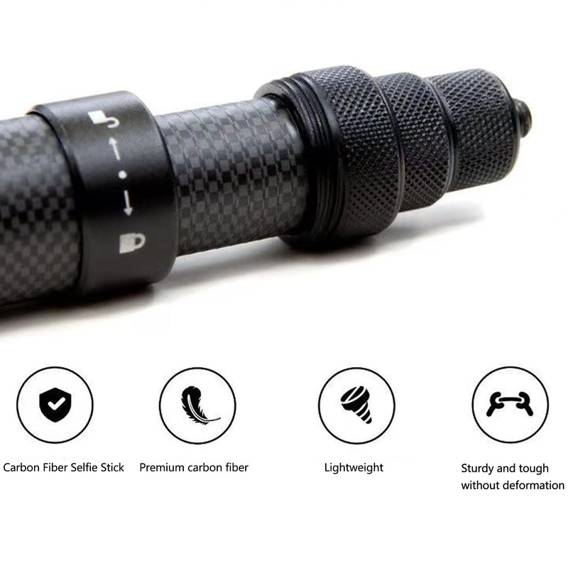 • COMPACT AND PORTABLE: Made of carbon fiber, super lightweight. Even if you have a selfie stick for a long time, it is convenient for long time shooting