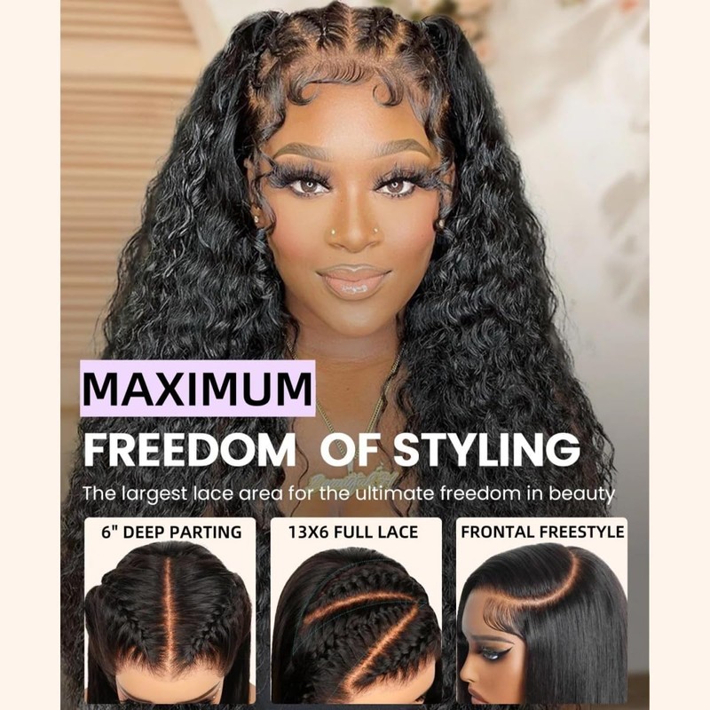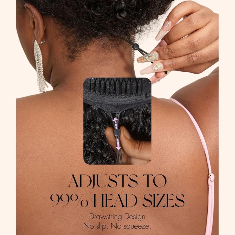 - 13x6 Ready to Wear Glueless Wigs Human Hair: Real Glueless Deep Wave Wig, Upgraded Invisible Elastic Drawstring, Push & Pull Snug Fit, Neck Fit Design for All Size Head!