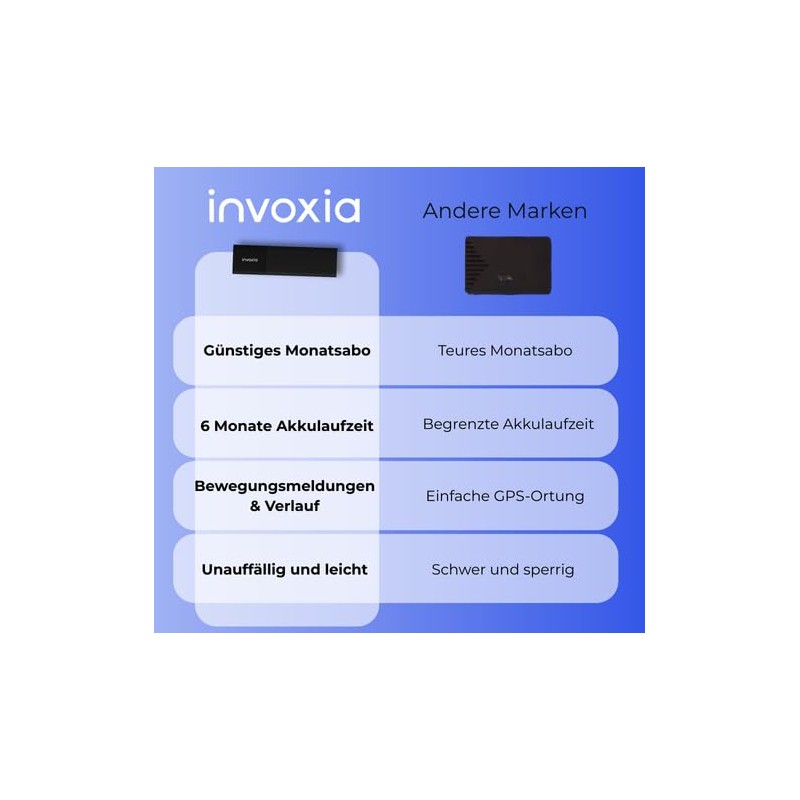 - NEUE EDITION 2026, PRÄZISER, ROBUSTER: Der Invoxia Classic-GPS-Tracker kommt in einer verbesserten Version zurück. Jetzt wasserdicht (IP67), mit GPS der nächsten Generation für noch genauere Ortung und USB-C-Anschluss für schnelles und universelles Laden.