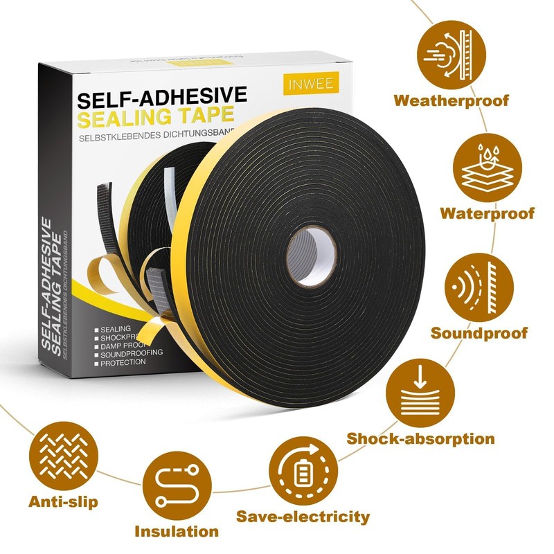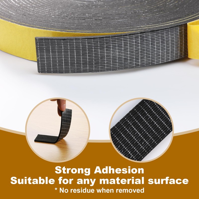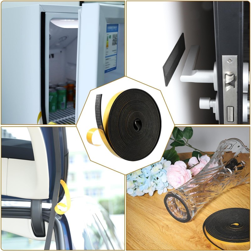 - WIDE APPLICATION: The self-adhesive foam tape has excellent compression and deformation resistance, strong elasticity, durability, widely used in various doors seal, windows, bathrooms, showers, sinks, furniture, automobiles, speakers, toys, handicrafts, sports equipment, etc, as a sound absorbing material, sealing and insulating material for air conditioner or refrigerator.