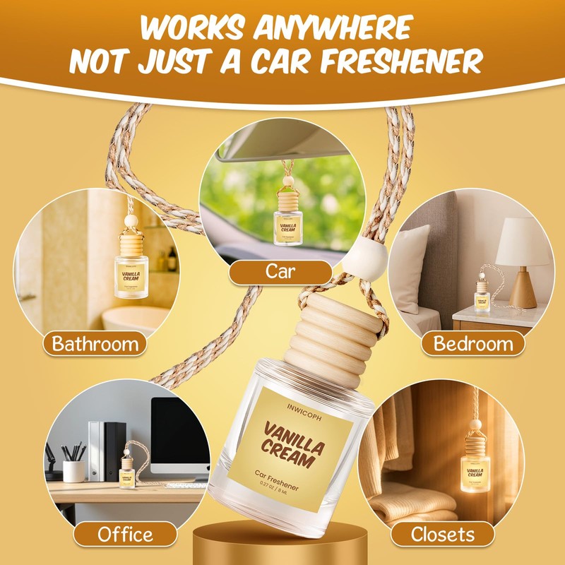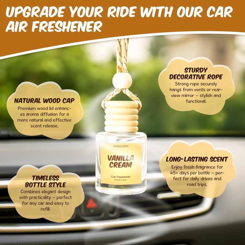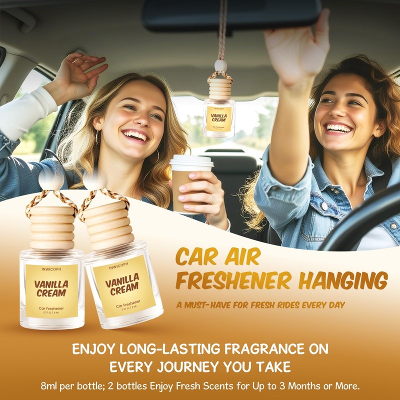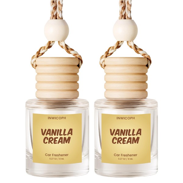 INWICOPH Premium Car Air Freshener Diffuser Set (2 Pack) - Vanilla Cream Fragrance Oil, 45+ Day Long-Lasting Hanging Auto Freshener