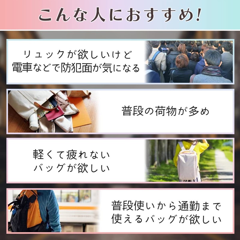 It can be opened and closed easily from the back, so it is highly recommended for those who thought that the backpack is easy but worried about being a security issue.