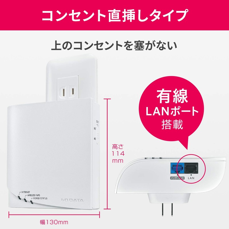 iO Data WN-DX1300GRN WiFi Wireless LAN Router, Dual_band, Direct Plug Type, 867 Mbps, IEEE 802.11ac Unique Mesh Router, 360 Connect, IPv6, Japanese Manufacturer