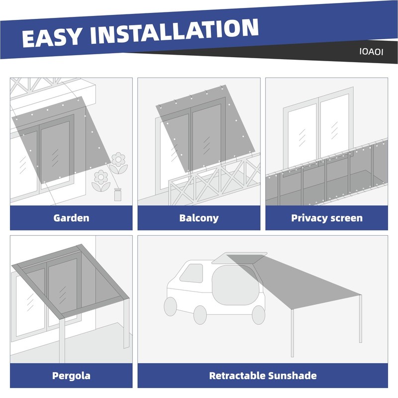 IOAOI sun shade sail are a stylish andeffective shade solution, perfect for outdoors, gardens, patio, yard, pergola, balcony, terraces, swimming pools, barbecue areas and more. Our shade sail canblock 95% of UV rays and breathable material allows water and air to passfreely. Even on hot summer days, our shade sails will keep you comfortable.