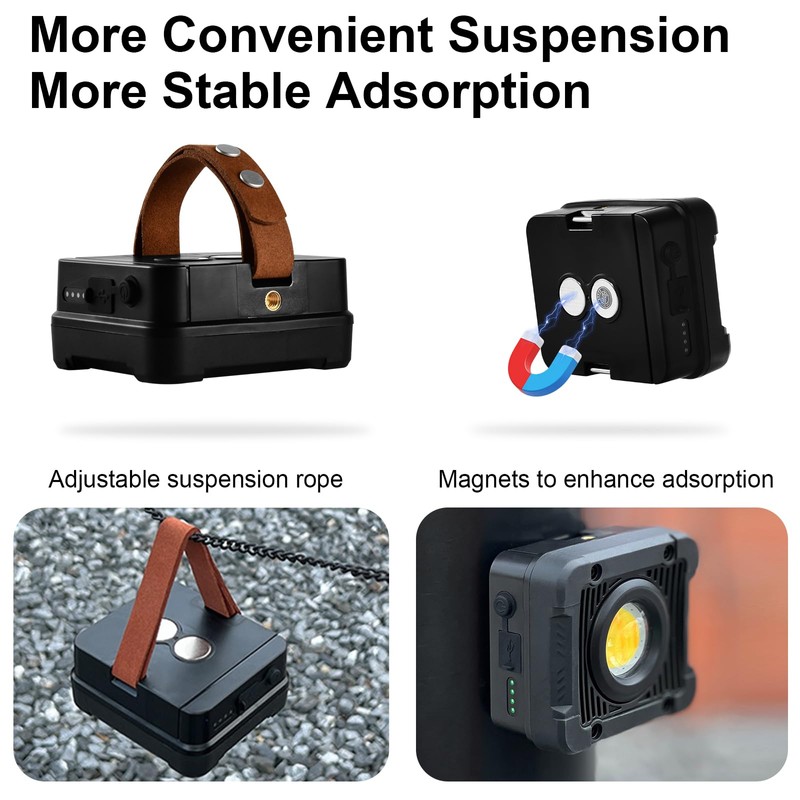 - 🌞【Convenient to Use】 Hands free, this camping light comes with a leather starps and hook,with magnet on the base, which allows you to hang the tent light upside down to get better light when lighting a large area. Please pay attention to check whether the magnetic suction is firm to prevent falling.