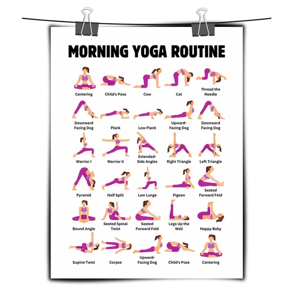 - 1. Stunning morning yoga routine canvas print featuring vibrant and detailed yoga pose illustrations. 16x24-Unframed