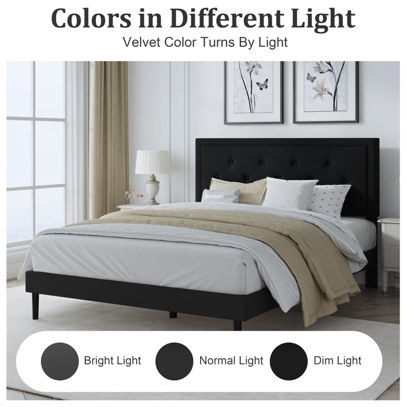 - Stunning Visuals: The velvet fabric of our bed frame showcases a unique color shift in different lighting. Under shadows, it appears richer, while in bright rooms, it radiates a lighter hue.