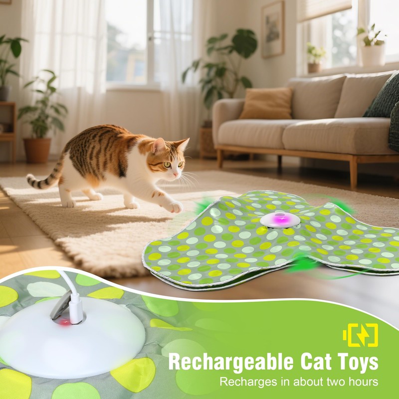 - Motion-Activated Electric Cat Toy -- This automatic cat toy enters standby after 5 minutes. A simple touch reactivates the feather cat toy instantly. The play-rest cycle keeps your cat engaged without fatigue, while extending battery life. Perfect for solo play, these cat toys interactive for indoor cats help relieve boredom, support mental stimulation, and provide endless fun for kittens and adult cats alike.