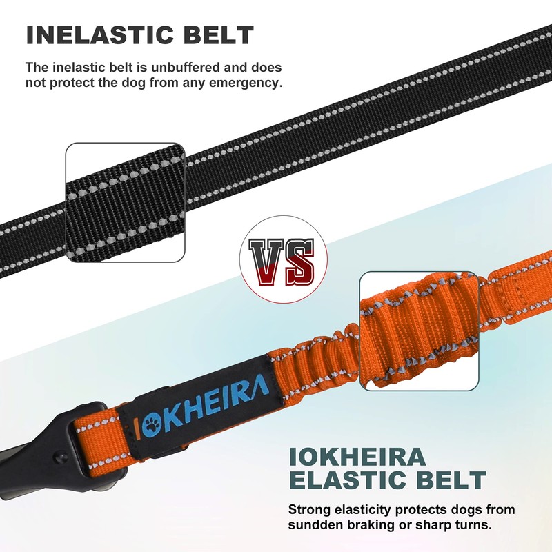 - ◆◇Elastic Buffer Design: Iokheira's dog car harness seatbelt car tether are made of High-quality bandages, strong elasticity can protect dogs from sudden braking or sharp turns, and the high quality zinc alloy swivel carabinercan keep the dog stable during the car ride,enhance the safety of pets while driving, and ensure the safety of drivers.