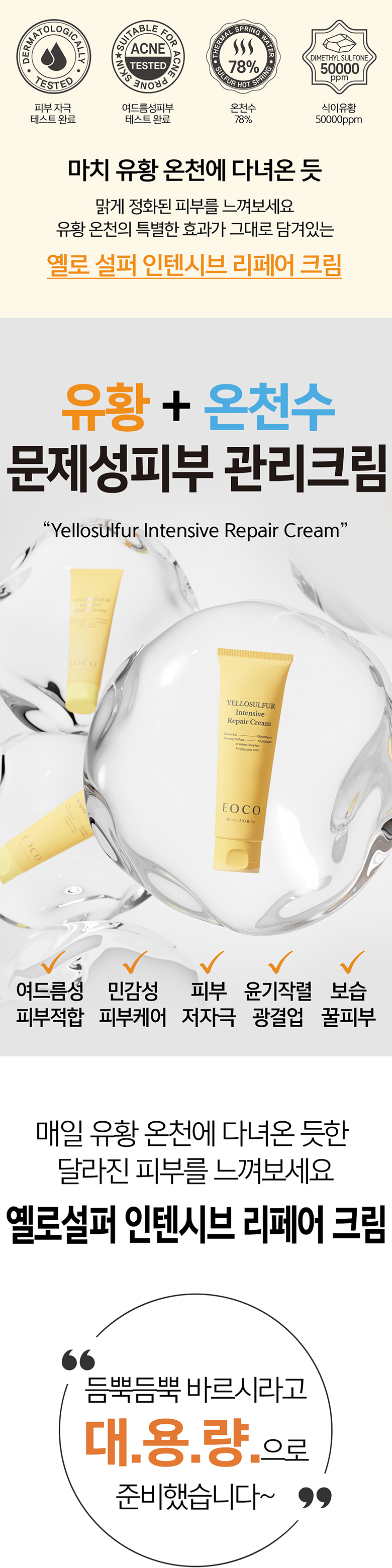 이오코 옐로설퍼 인텐시브 리페어 크림 80ml 유황크림 여드름 지성 악건성 홍조 피부 진정 보습
