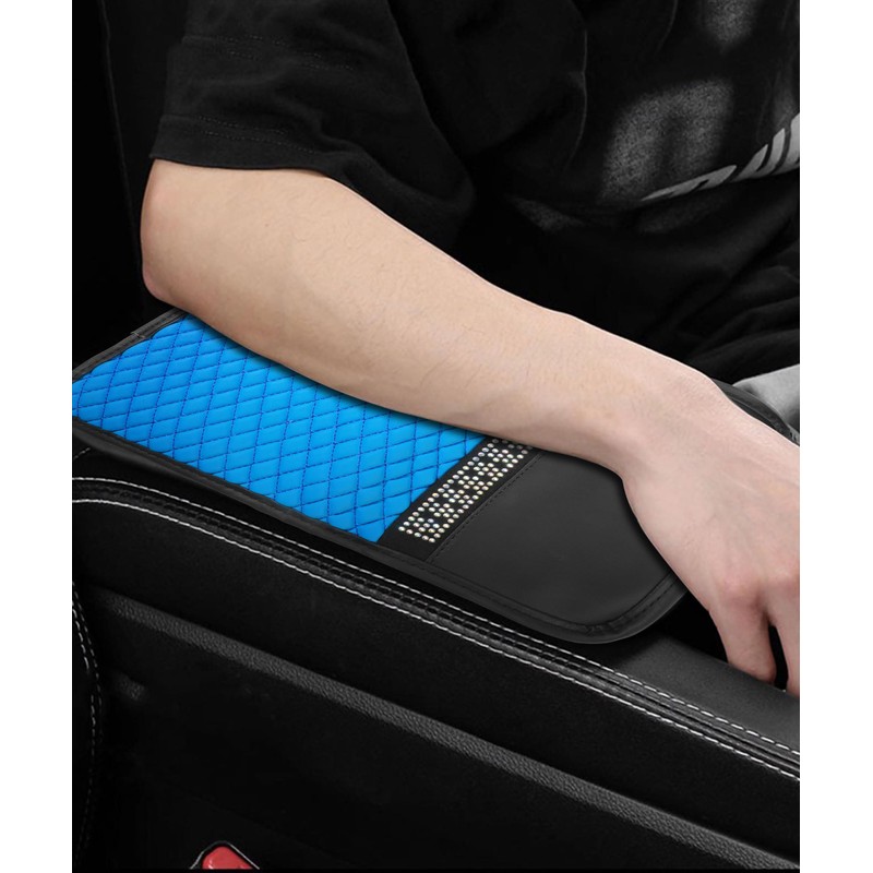 iolory Car Arm Rest Cover Pad,Car Center Console Cover,Universal Anti-Slip Leather Car Armrest Cover with Rhinestones,Automotive Interior Accessories,Suitable for Most Cars,SUVs,Trucks,Vans (Blue)