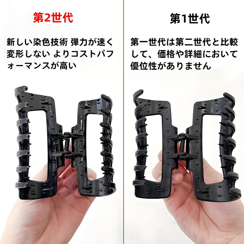 弾力性のあるシリコン素材と強力スプリングにより、長時間の使用でも快適でしっかり固定。髪量が多い方や厚みのある髪でも一日中崩れにくく、耐久性にも優れています。