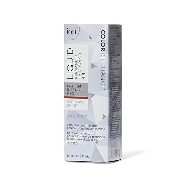 Ion Medium Intense Red Permanent Creme Hair Color, 4IR, Paraphenylenediamine Free, 100% Gray Coverage, Vegan and Cruelty Free, 2.05 Ounce