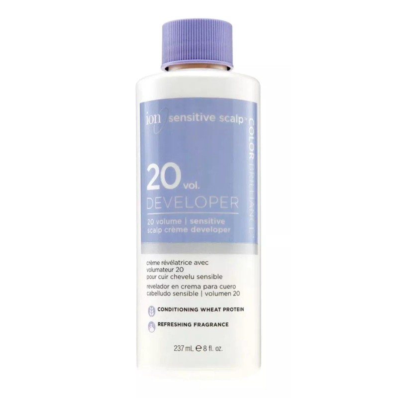 La Crema Reveladora o Peróxido de 20 Volúmenes de Ion está diseñado para una cobertura superior de las canas y para una acción aclarante estándar con todos los aclaradores o tintes permanentes. Su fórmula europea que contiene activadores iónicos y proteína acondicionadora de Germen de Trigo, que ayudan a proteger la sensibilidad del cuero cabelludo. Se mezcla fácilmente con cualquier producto de color permanente para el cabello hasta 2 niveles. Asegura un cabello fuerte, suave y saludable durante y después del procedimiento aplicación de tinte permanente.