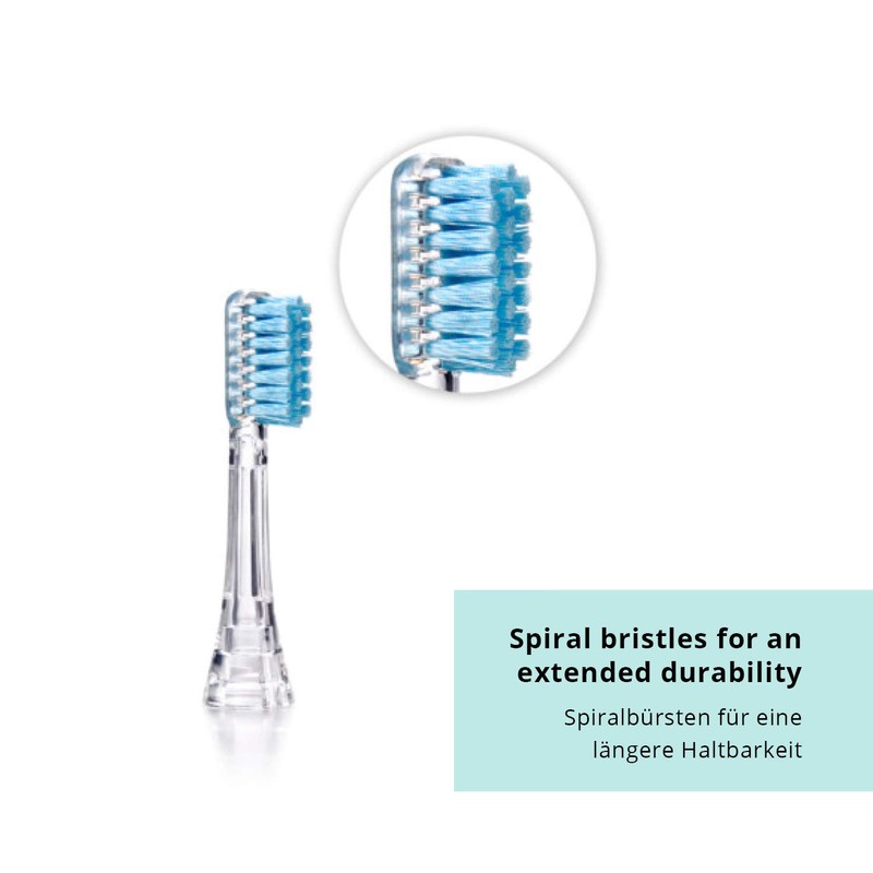 - Long durability: our spiral brushes are characterised by long durability. The individual bristles of the brush heads are spiral, which keeps their shape longer.