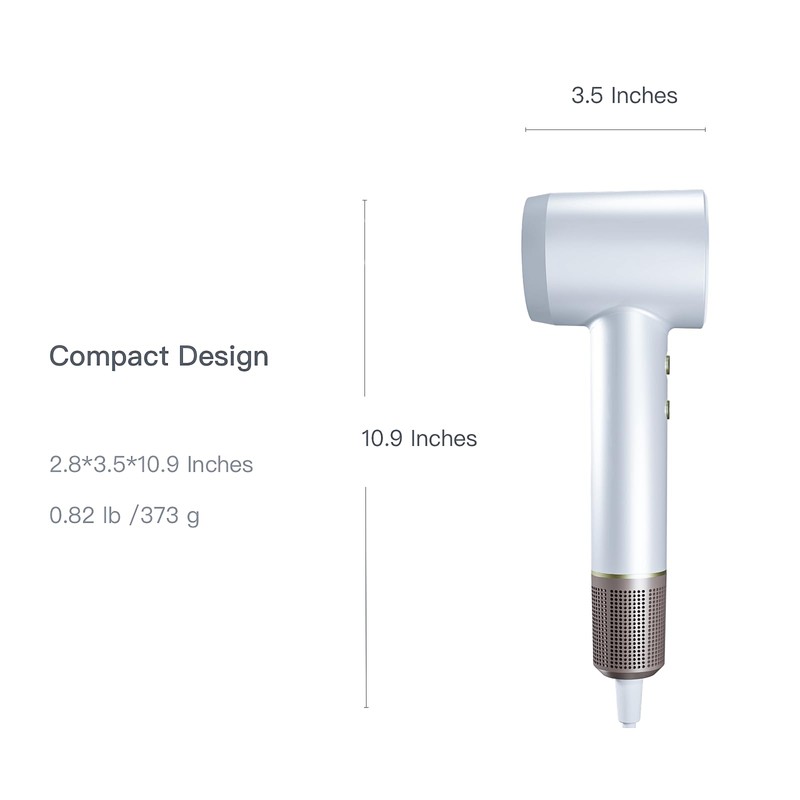 • This is a compact and lightweight hair dryer,that is suitable for women(2.8 * 3.5 * 10.9 inches and 0.82 lb).