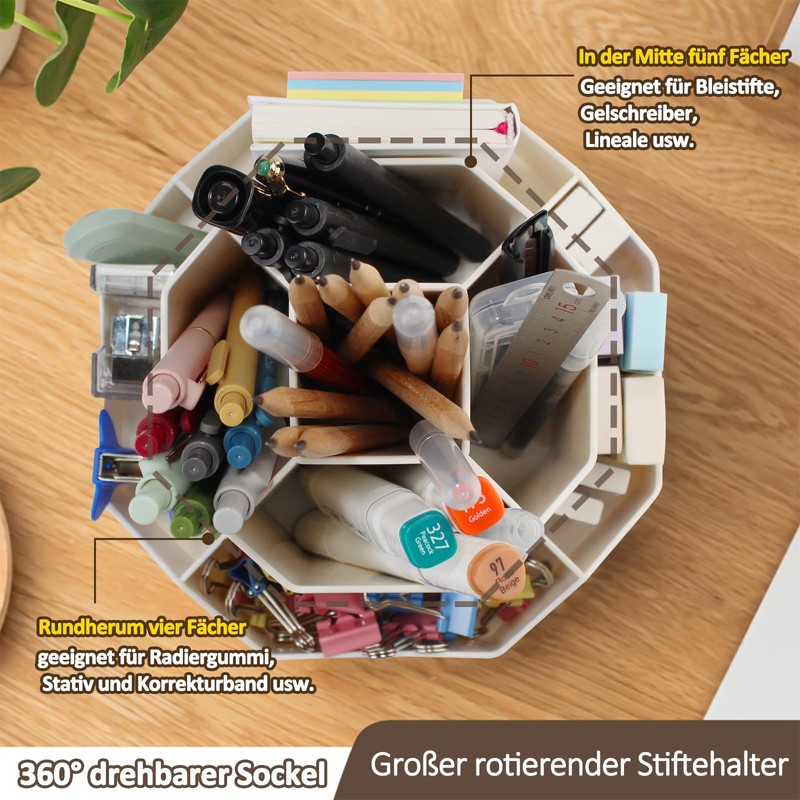 - 1. 360° rotating design - Everything at hand. The IOO6Z8SY rotating pen holder has a 360° rotating base that allows you to easily reach your stationery or small items. Whether learning, working or crafting - a simple twist is enough and everything is immediately at hand!