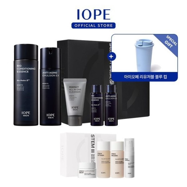 - Premium men's skincare set from the trusted brand IOPE.
