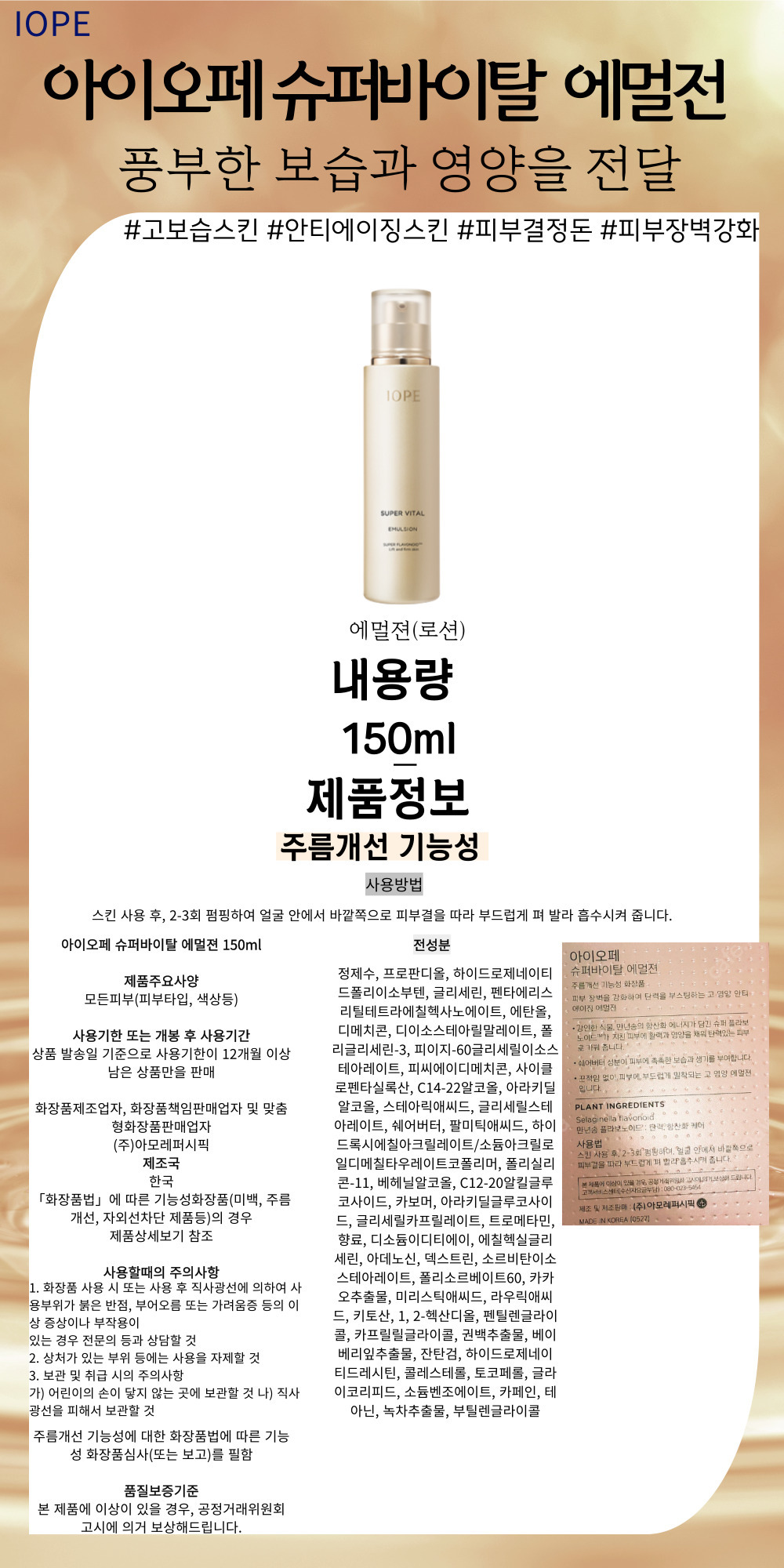 IOPE Super Vital Emulsion for women in their 60s, elastic skin care, shea butter ingredient, moisturizing, vitality, nutrition, skin, flavonoid, arm