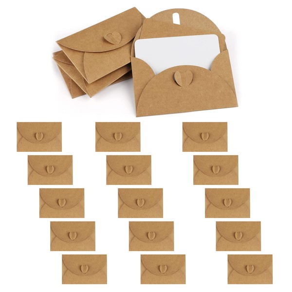- Mini envelope set, 15 pieces vintage kraft paper envelopes with heart closure + 15 pieces blank paper cards.