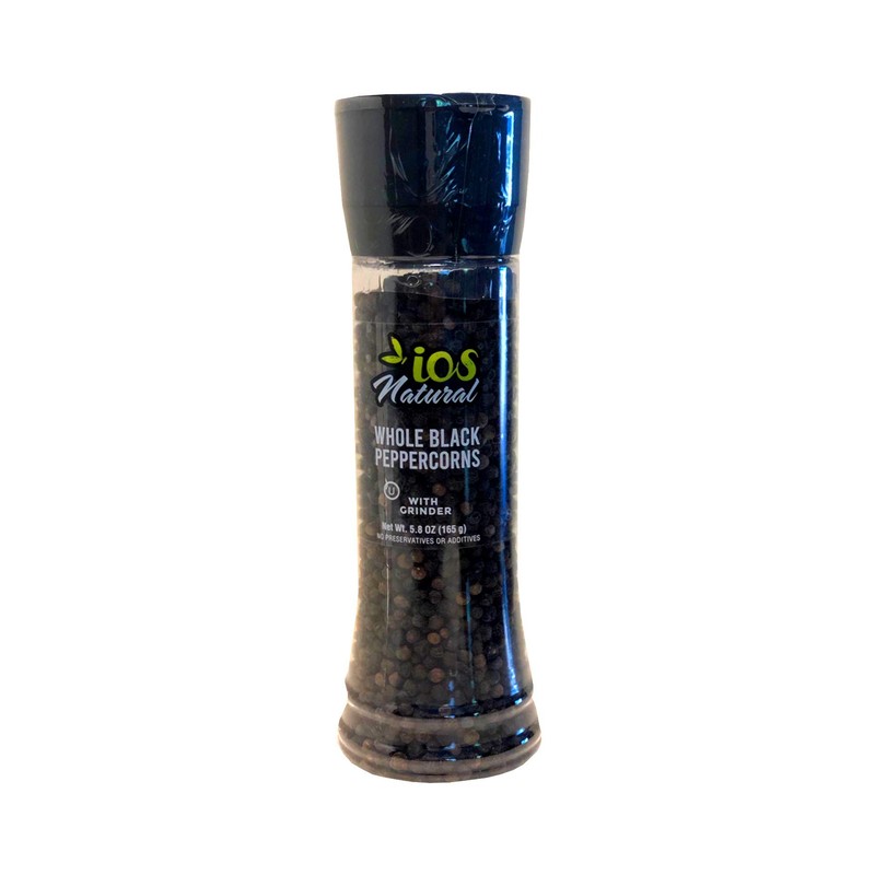 IOS Natural Whole Black Peppercorns with Grinder Net 5.8Oz