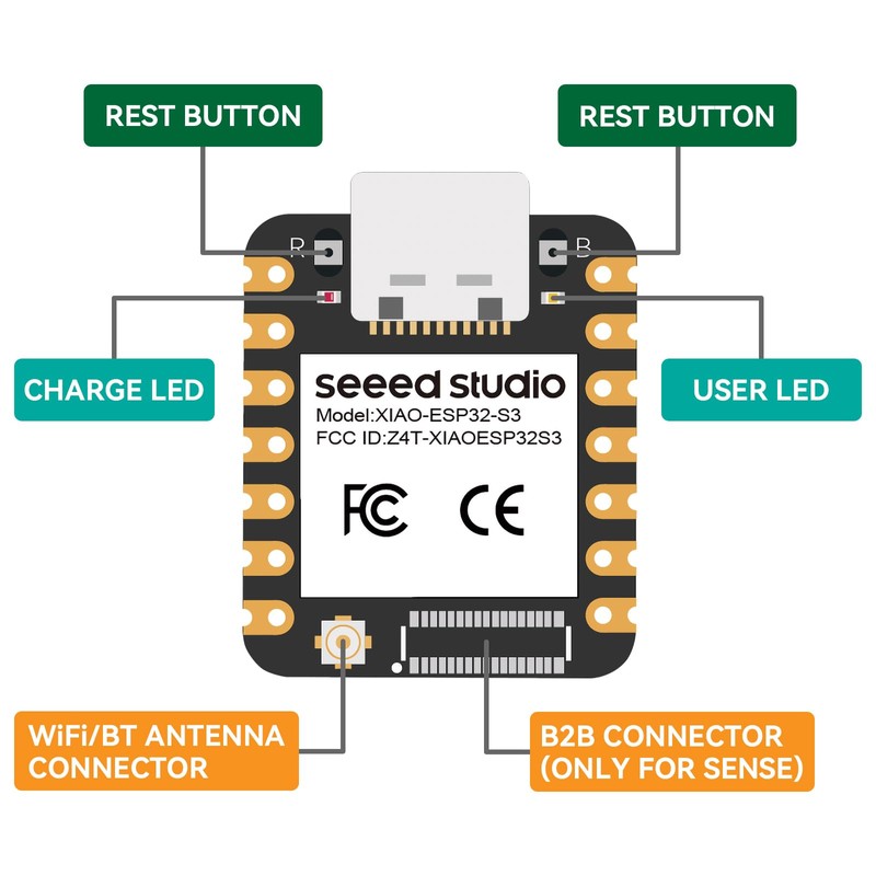 At just 21 x 17.5mm, XIAO ESP32S3 is designed with the classic thumb-sized form factor, making it perfect for wearable devices. Its breadboard-friendly and surface-mount design makes it ideal for production, with all SMD components on a single-sided board for ease of mass production.