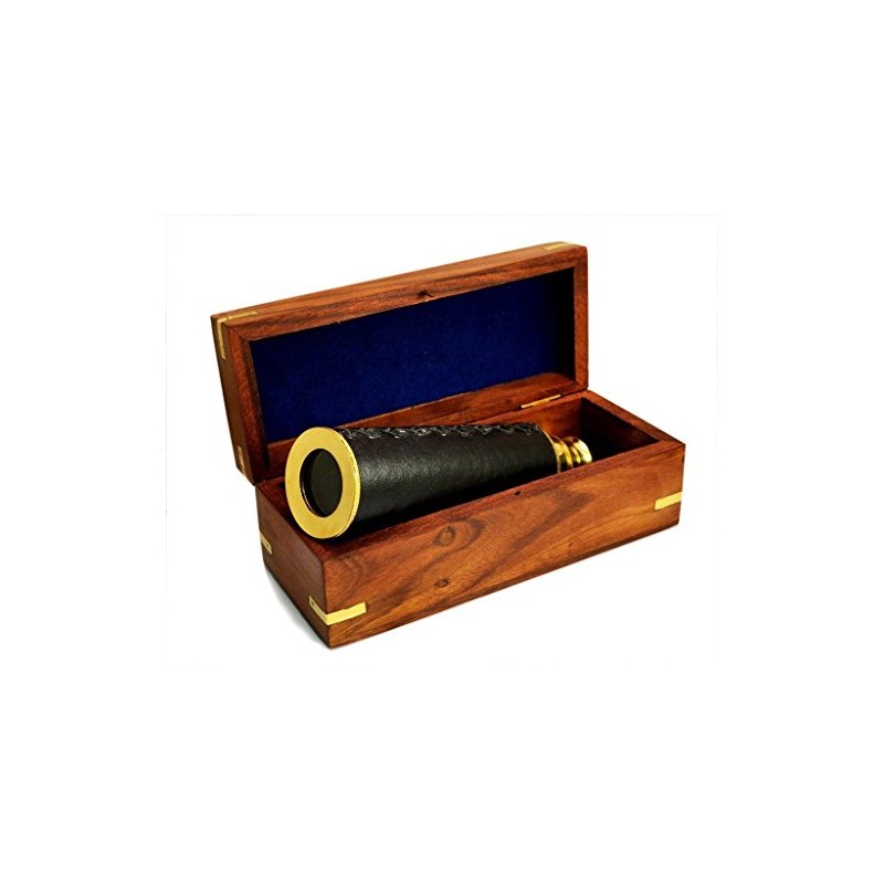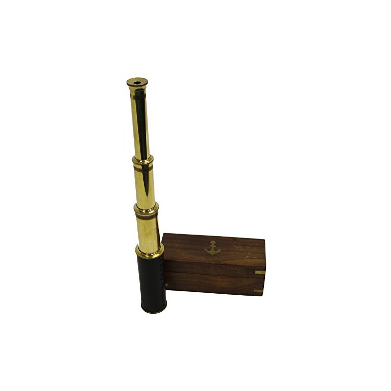 15inch handheld brass telescope with wooden box: Nautical pirate scope, can adjust according to distance, comes in a wooden storage box.