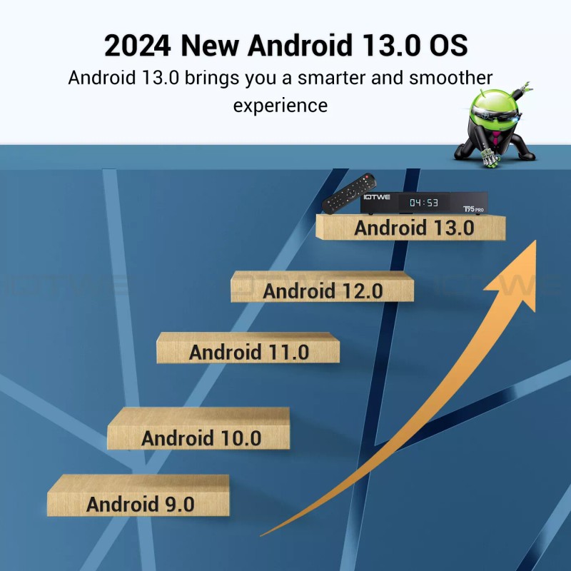 • The T95 W Smart TV Box with Android 13.0 OS offers you an improved operating system compared to Android 12.0. Enjoy the benefits of a faster, more stable system, improved software compatibility, and a streamlined user interface and experience. Experience better games, applications and overall improved performance with the T95 W Android 13.0 TV Box. |
