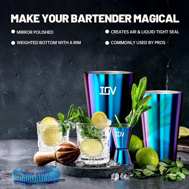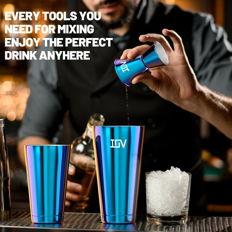 IOV Boston Cocktail Shaker Bar Set, Bartender Kit Drink Mixer Set with 18 oz & 28 oz Boston Shakers, Hawthorne Strainer, Double Jigger, Bar Tool Kit and Recipe Booklet - Rainbow