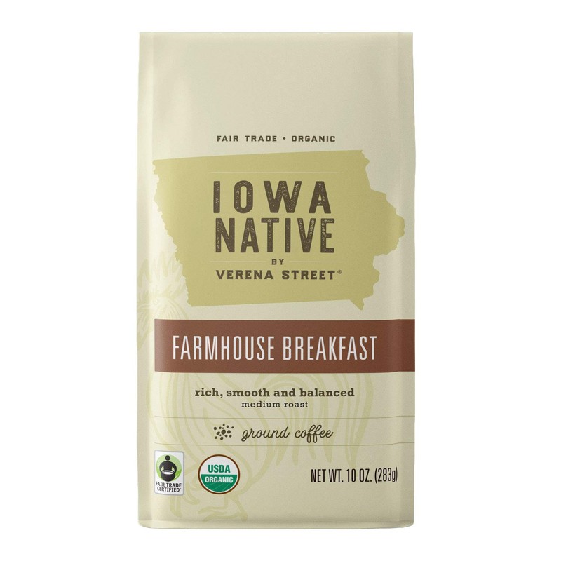 Iowa Native Fair Trade Organic 10 Ounce Ground Coffee, Farmhouse Breakfast Medium Roast