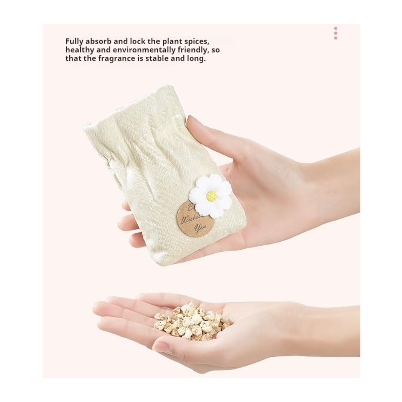 - Decorative Design: Adorned with delicate white flower appliques and finished with a rustic twine tie, these fragrance bags add a charming touch to any decor.