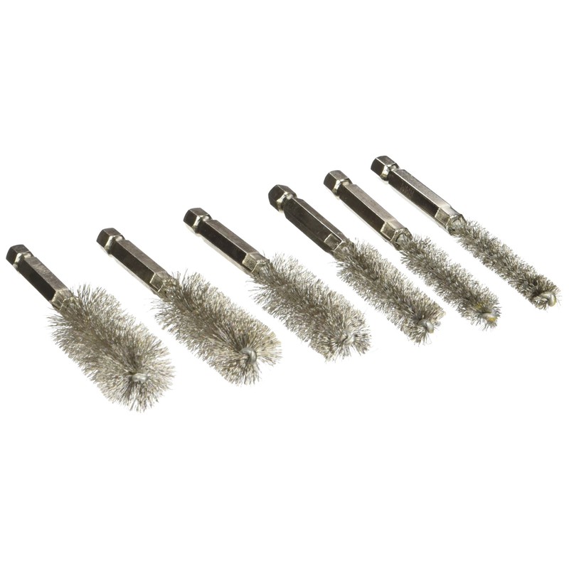 Bore Brush Set, Brush Length 2 In., Bristle Material Stainless Steel, Handle Length 1-3/4 In., Overall Length 3-3/4 In., Handle Type Hex, Trim Length 3/4 In., Handle Material Stainless Steel, Color Coding System No