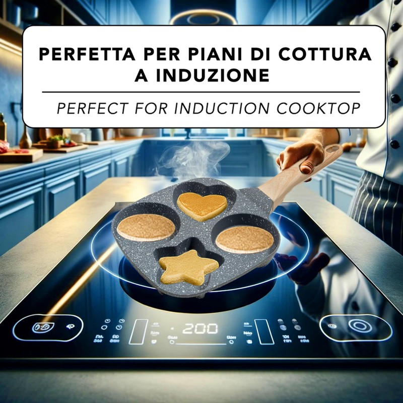 IPEA Non-Stick Induction and Gas Pan - 21cm - Non-Stick Aluminium Frittata Frittata Crepe Egg Hamburger Pan - Kitchen Pan with 4 Shapes - Super Comfort Handle