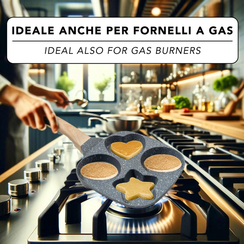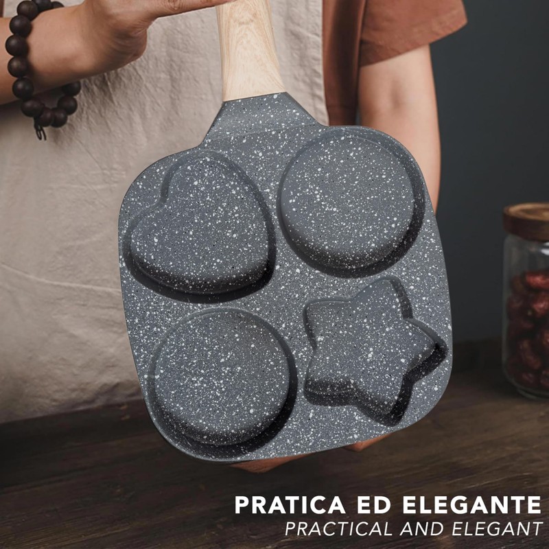 - 4 MOLDS FOR FAST, TIDY AND MULTIPLE COOKING This pan is designed with 4 circular wells that allow you to cook pancakes, eggs, burgers or crepes evenly without mixing together. Ideal for a full breakfast or brunch in minutes, saves time and ensures a perfect presentation.