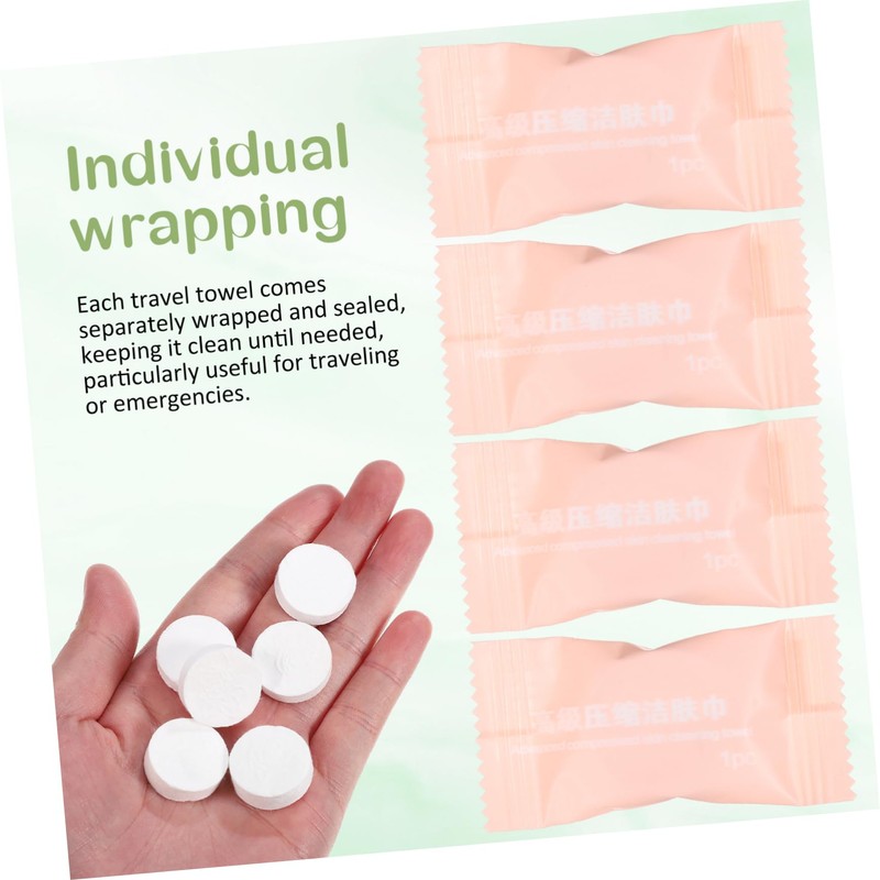 -Instant expansion: Upon soak in water, the towel tablets rapidly expand into full-size, generously proportioned facial towels, providing ample coverage and absorbency Mini Compressed Towels.