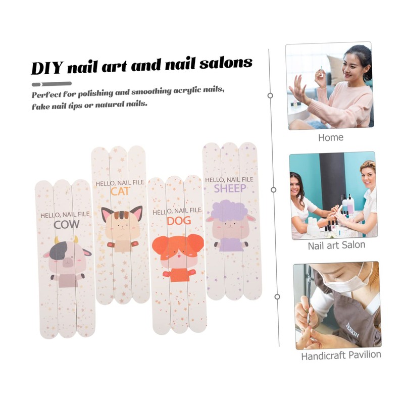 Ipetboom 12pcs Animal Nail File Fingernail Files Rectangular Nail Buffer Blocks Double-sided Polishing Buffer for Home Art