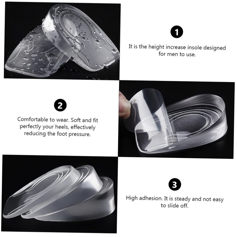 - Color: Transparent height insoles for men.