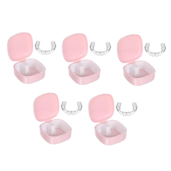 Ipetboom 5pcs Box Box Moldable False Small Storage Clean Soaking Overnight Case Case Only Tartar Mouth Tooth Fake Holder Teeth Keeper Oral Retainers Container Plastic Pink