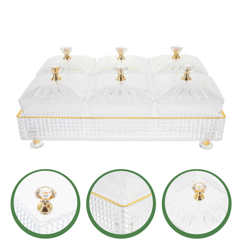 Ipetboom Dried Fruit Tray with Lid 6 Compartment Candy Nut Serving Container Appetizer Tray Snack Box Food Storage Box Divided Fruit Tray Platter for Party Family Dinner Transparent