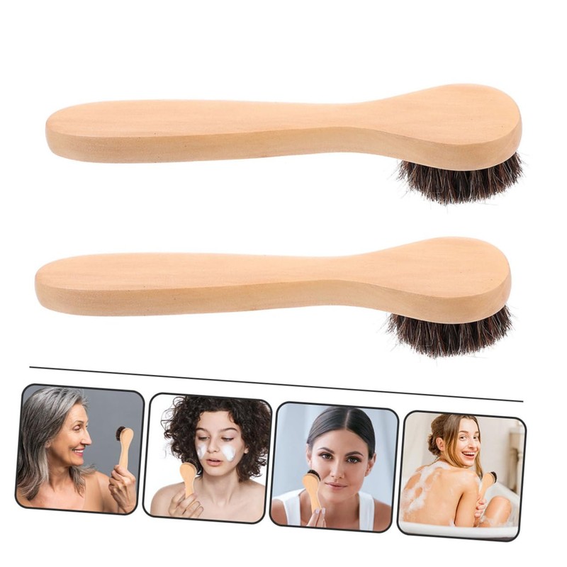 Ipetboom Facial Exfoliator Tool Handheld Cleansing Skin Brush Wood Face Brush Gentle Soft Bristles for Face