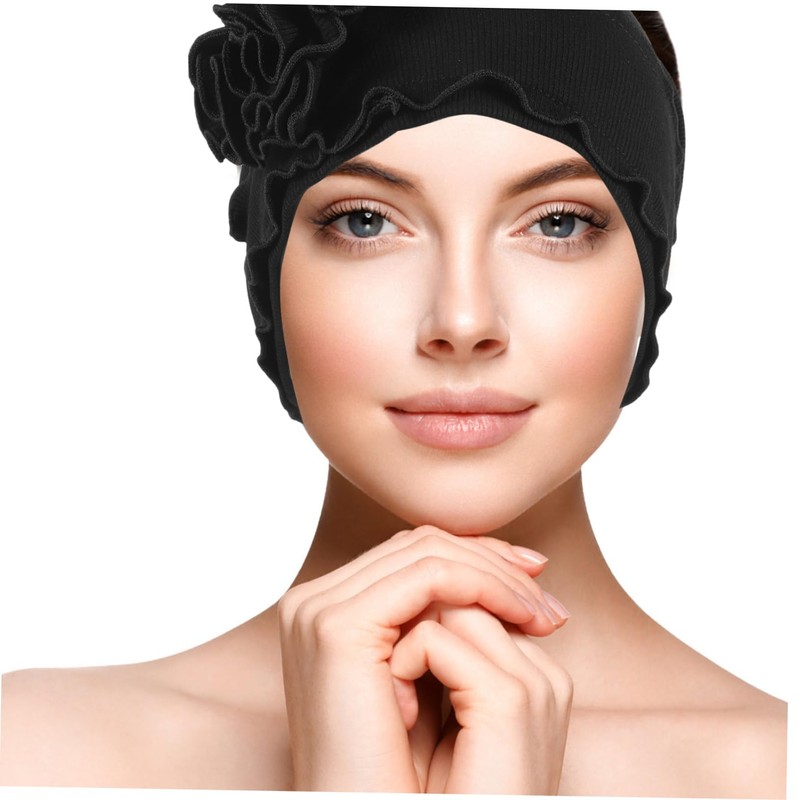 Ipetboom Large Flower Headwear Hat for Women Chemotherapy Cover Turban Chemo Hat Women's Headwear Flower Wrap Black