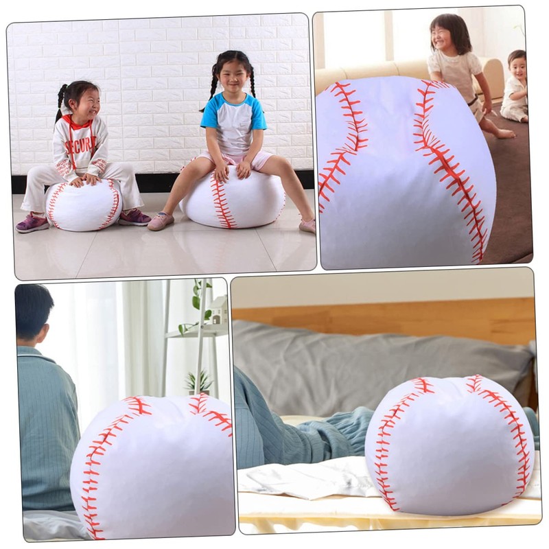 Ipetboom Portable Baseball Shaped Plush Storage Bag Organizer with Seating Lounger Function for Room Breathable Soft Bean Chair Alternative