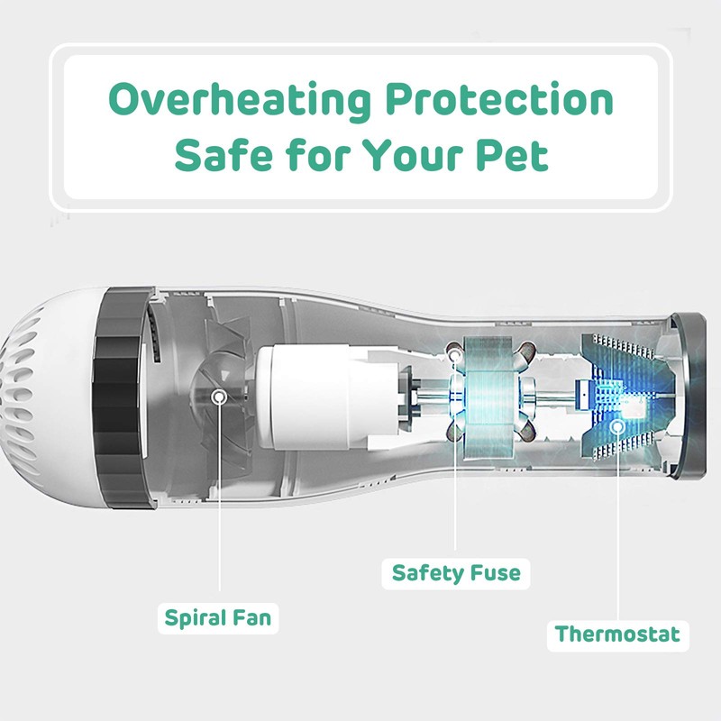 - New Upgraded, Drying While Grooming - Always struggled to dry and brush pet’s hair at the same time after a bath? iPettie pet dryer is the solution for you. You can easily remove matted hair and tangles from your pets while drying, thanks to the creative 2 in 1 design.