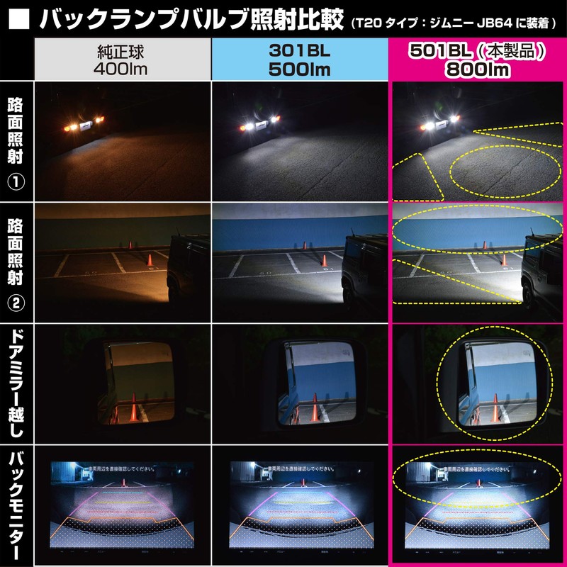 • 驚異の全光束800ルーメン 超高効率新型LED×9個搭載 純正球比、約3倍の明るさ 集光レンズ採用で光が遠くまで届く 定電流回路内蔵で常に一定の明るさを持続 突発的な過電流トラブルを回避する保護素子を内蔵 温度マネージメント機能・高熱伝導・放熱素材を採用し、超ハイルーメン&長時間変わらぬ明るさを実現