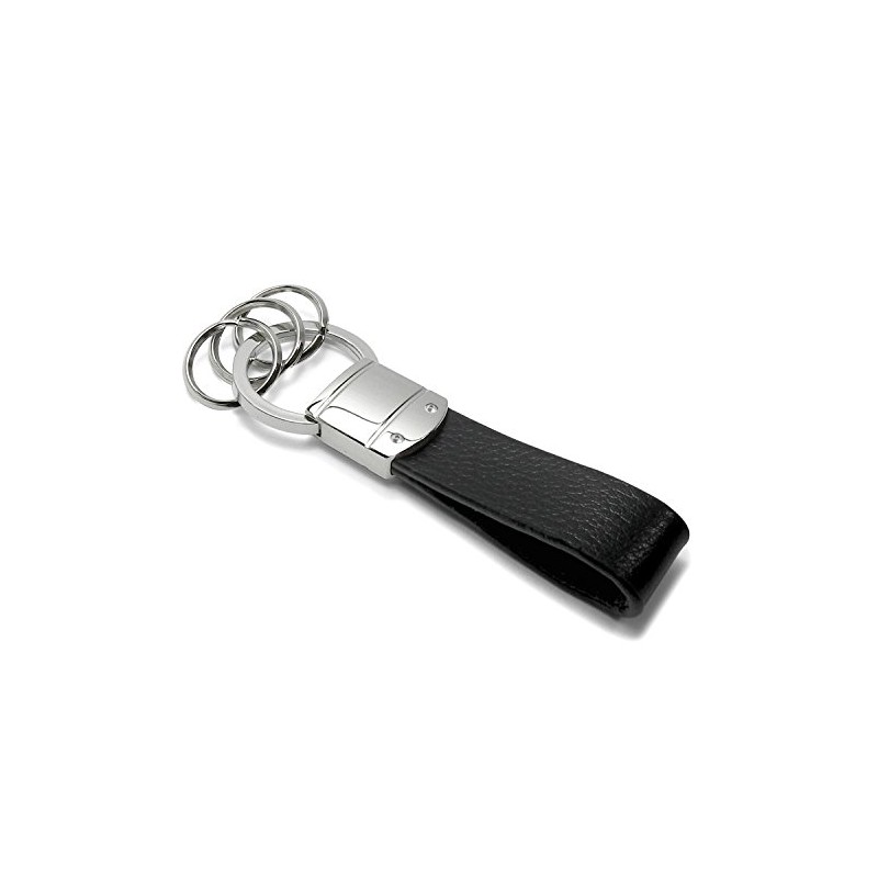 iPick Image Compatible with Infiniti Q70 Black Real Leather Strap Chrome Round Hook Metal Key Chain
