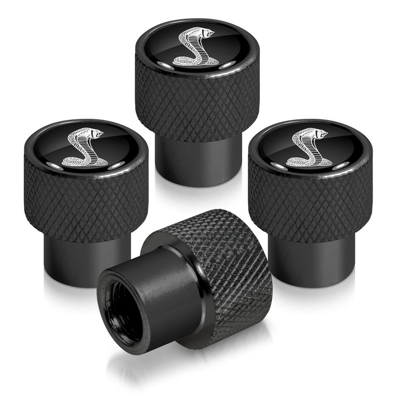 iPick Image for Ford Mustang Cobra Black Easy-Grip Aluminum Tire Valve Stem Caps