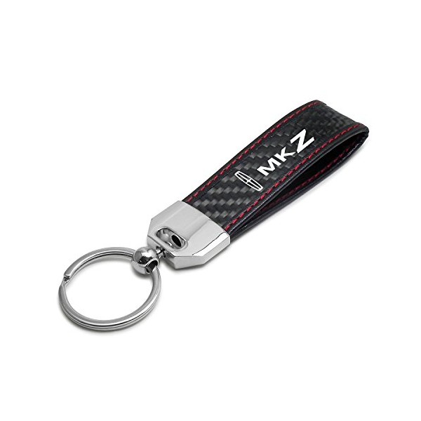 iPick Image for - Lincoln MKZ Real Carbon Fiber Leather Key Chain with Red Stitching