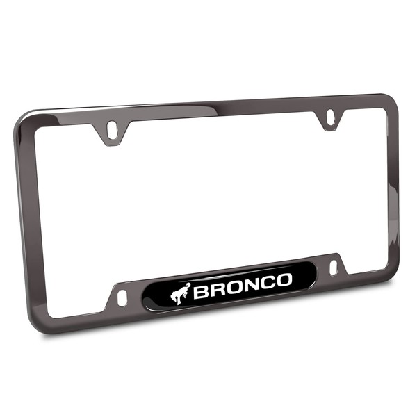 iPick Image Made for Ford Bronco Black Insert Gunmetal Chrome Stainless Steel License Plate Frame